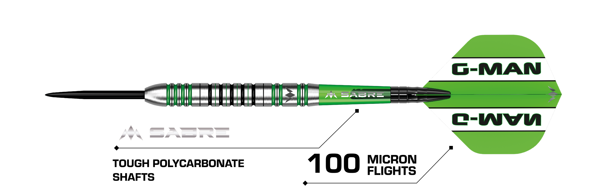 The Mission Graham Hall player darts feature a straight barrel design with black and green highlighted radial grooves along the surface of the dart.